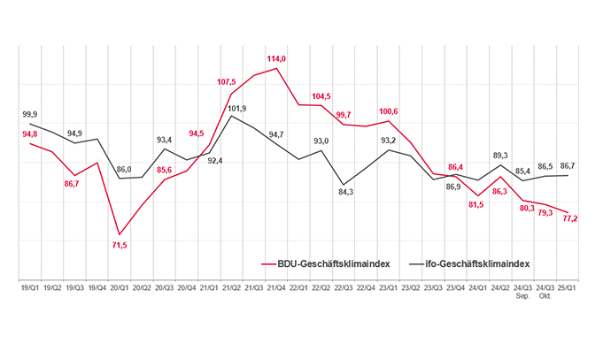 NewsartikelGeschäftsklima im Consulting gegenüber Vorquartal leicht gestiegenBonn, 09.04.2025 – Der Geschäftsklimaindex der Consultingwirtschaft, der vom Bundesverband Deutscher Unternehmensberatungen (BDU) herausgegeben wird,… Weiterlesen